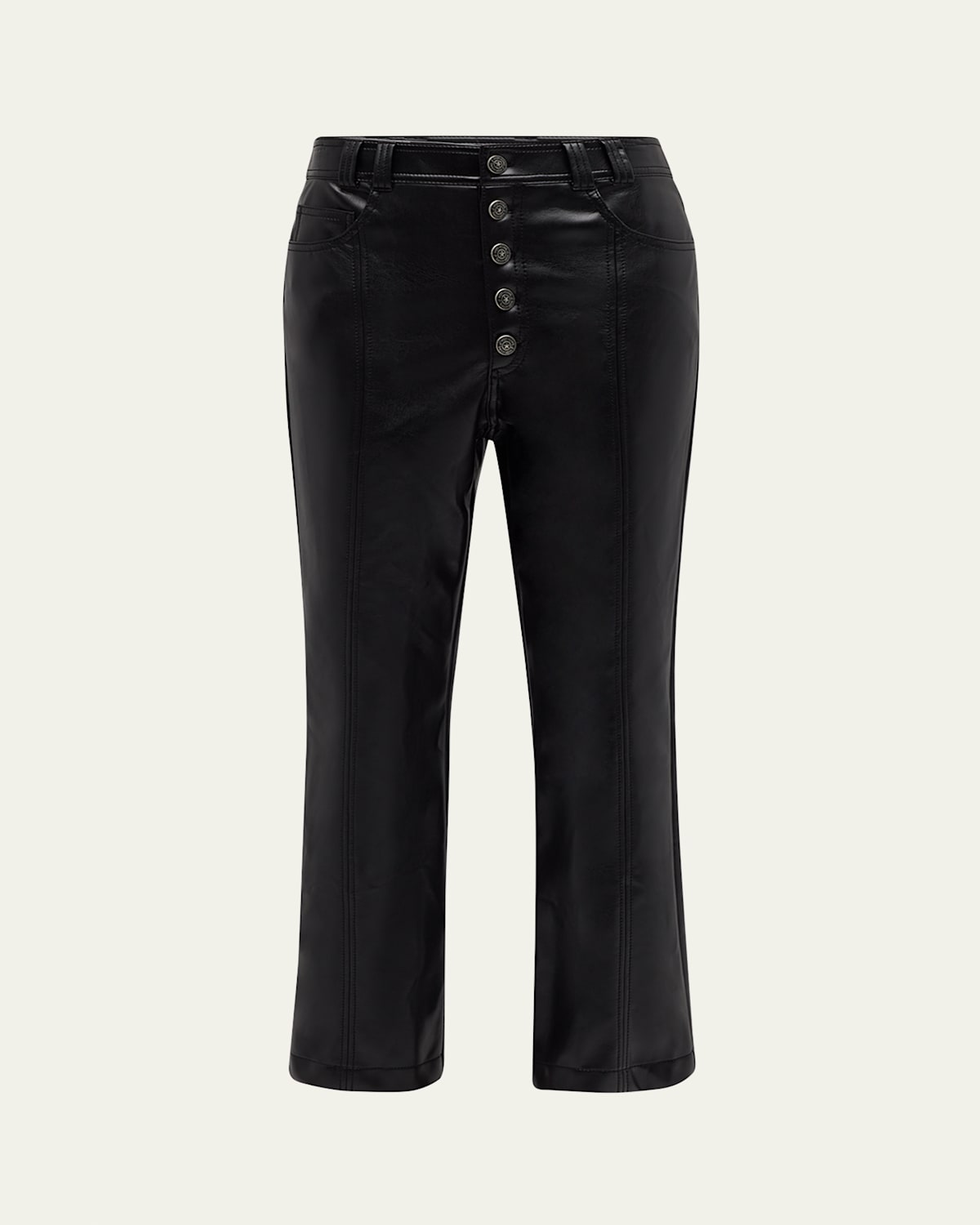 Cinq à Sept "Wallace" faux leather (polyurethane/viscose) pants finished with logo plaque on the back right pocket Mid rise sits high on hip Fivepocket style Cropped at the ankle Bootcut legs Exposed button fly Dry clean Imported