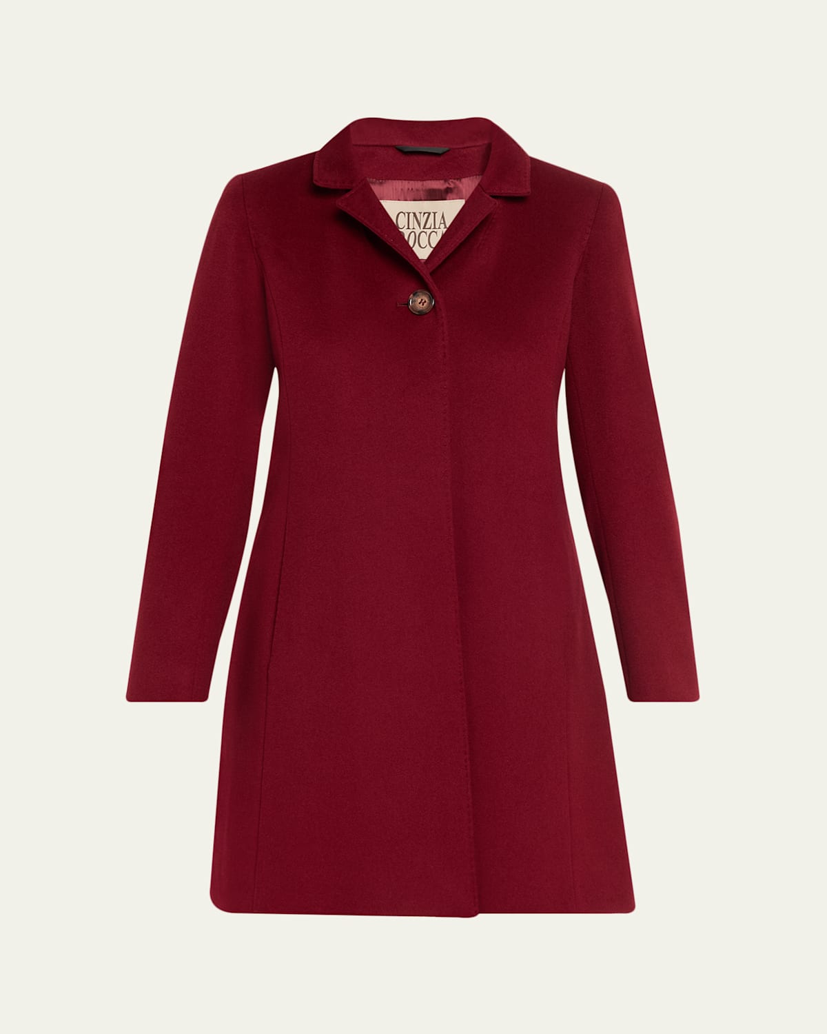 Cinzia Rocca top coat crafted in premium, pure wool featuring a sophisticated silhouette with an Aline fit. Inverted notch collar Long sleeves Onseam pockets Classic, Aline fit Midthigh length Concealed buttonfront Wool Lining: Viscose Dry clean Made in Italy