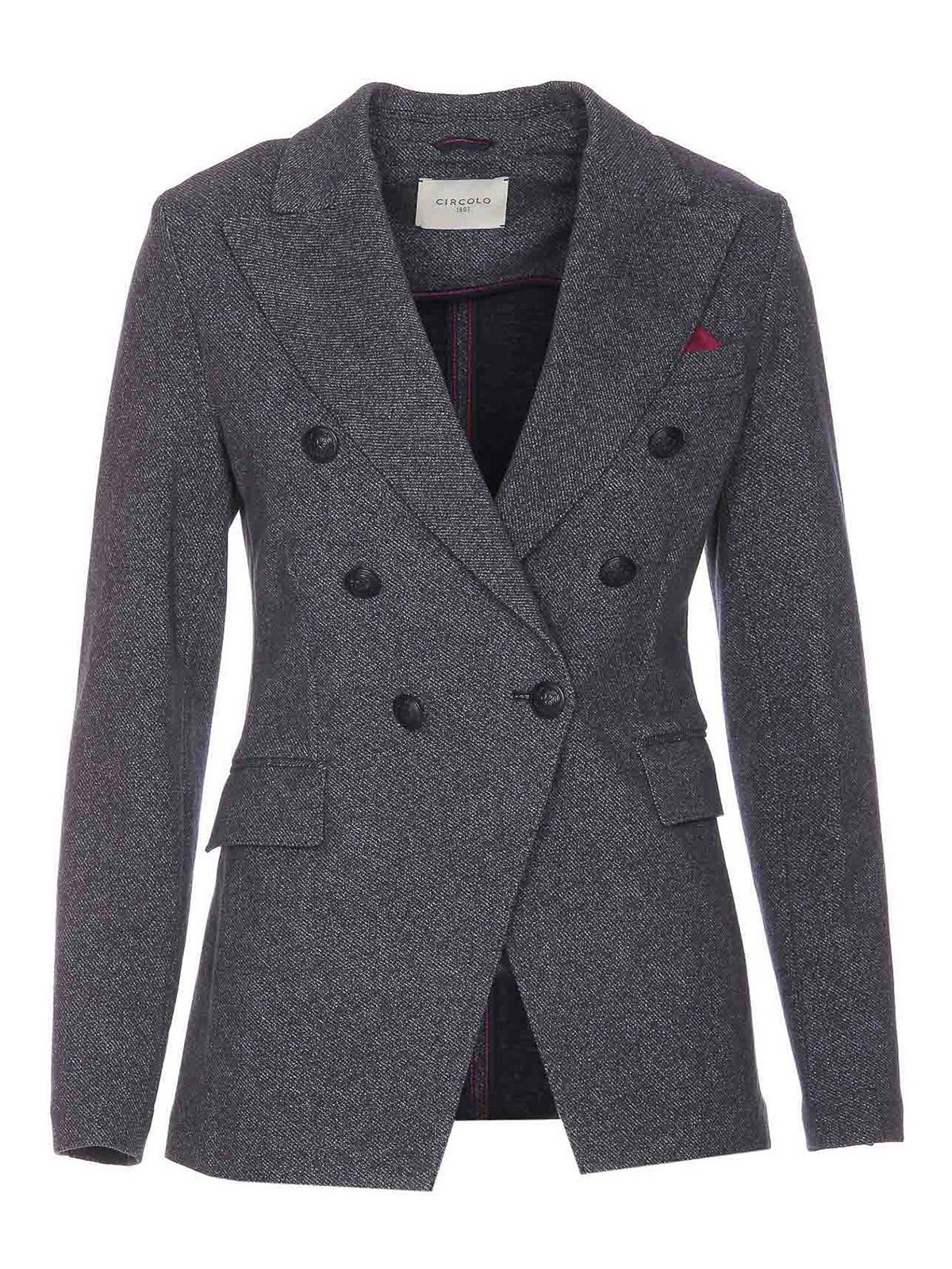 Veste à double boutonnage grise Circolo1901 avec boutons frontaux, col en V, manches longues inversées, boutons sur les poignets