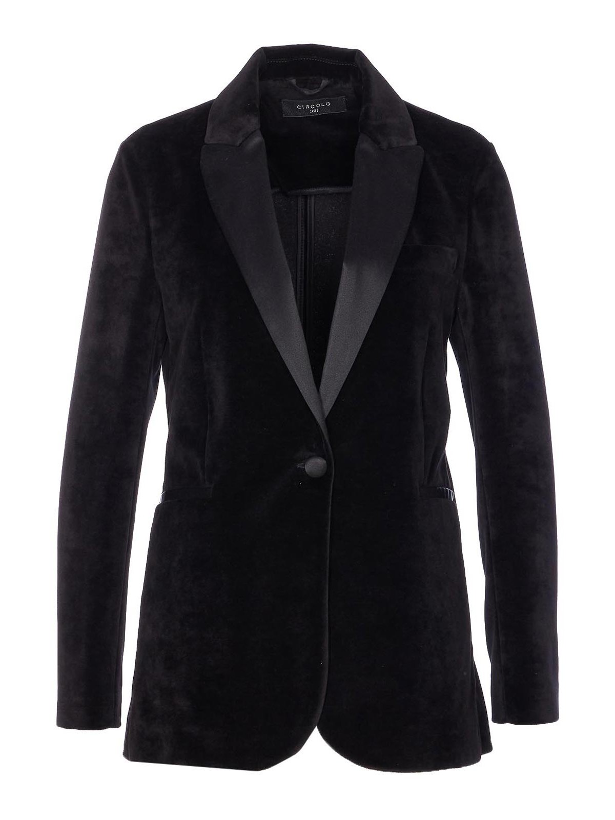 Veste noire Circolo, bouton en V, encolure, manches longues, boutons sur les poignets. Nom de la couleur du créateur: noir