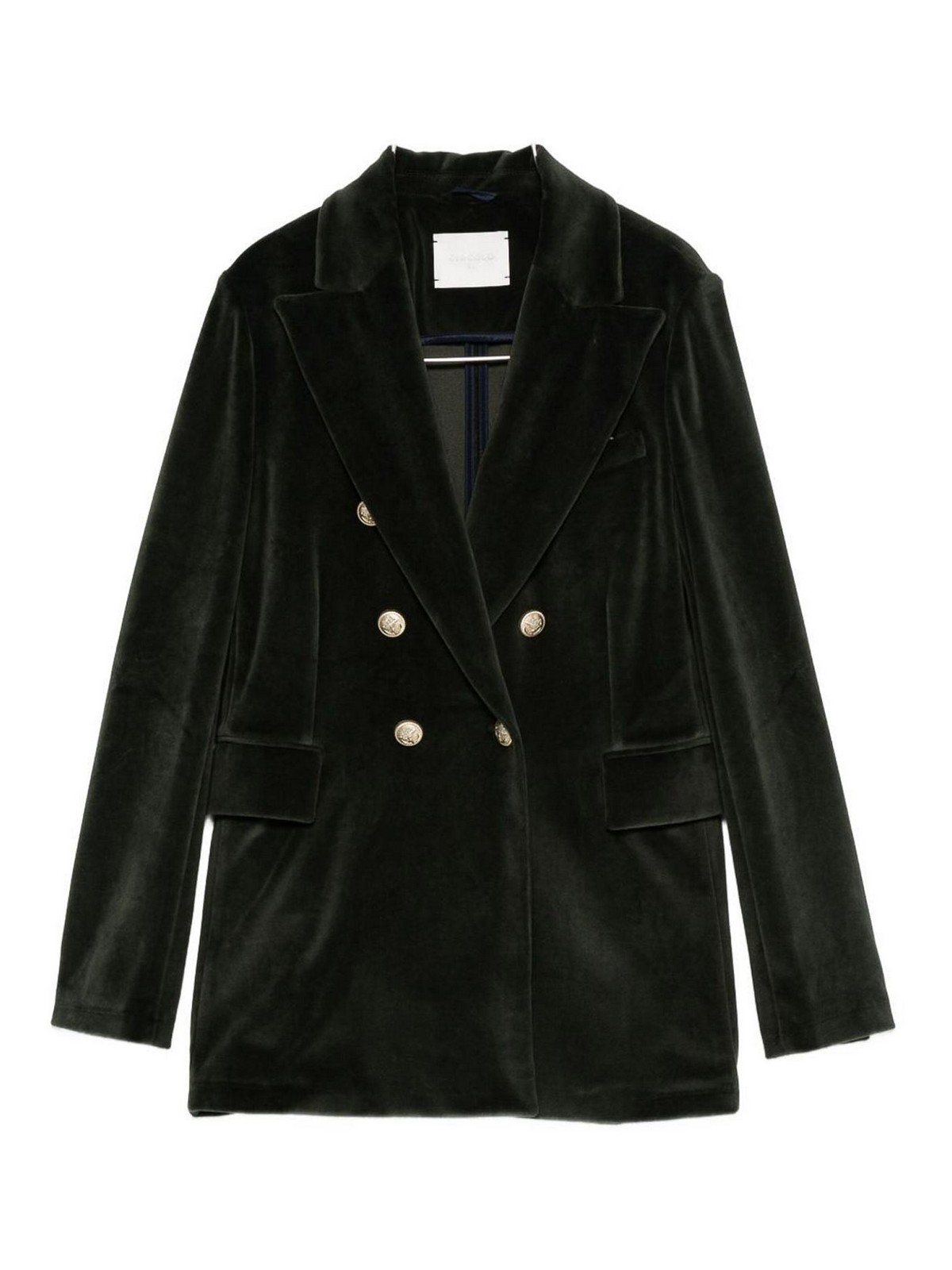 Poches longues à rabat vertes à double boutonnage et boutons ton sur ton