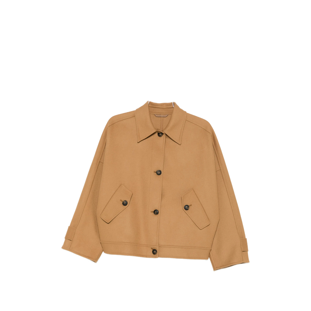 light brown front flap pockets front button fastening classic collar tabs cuffs short length