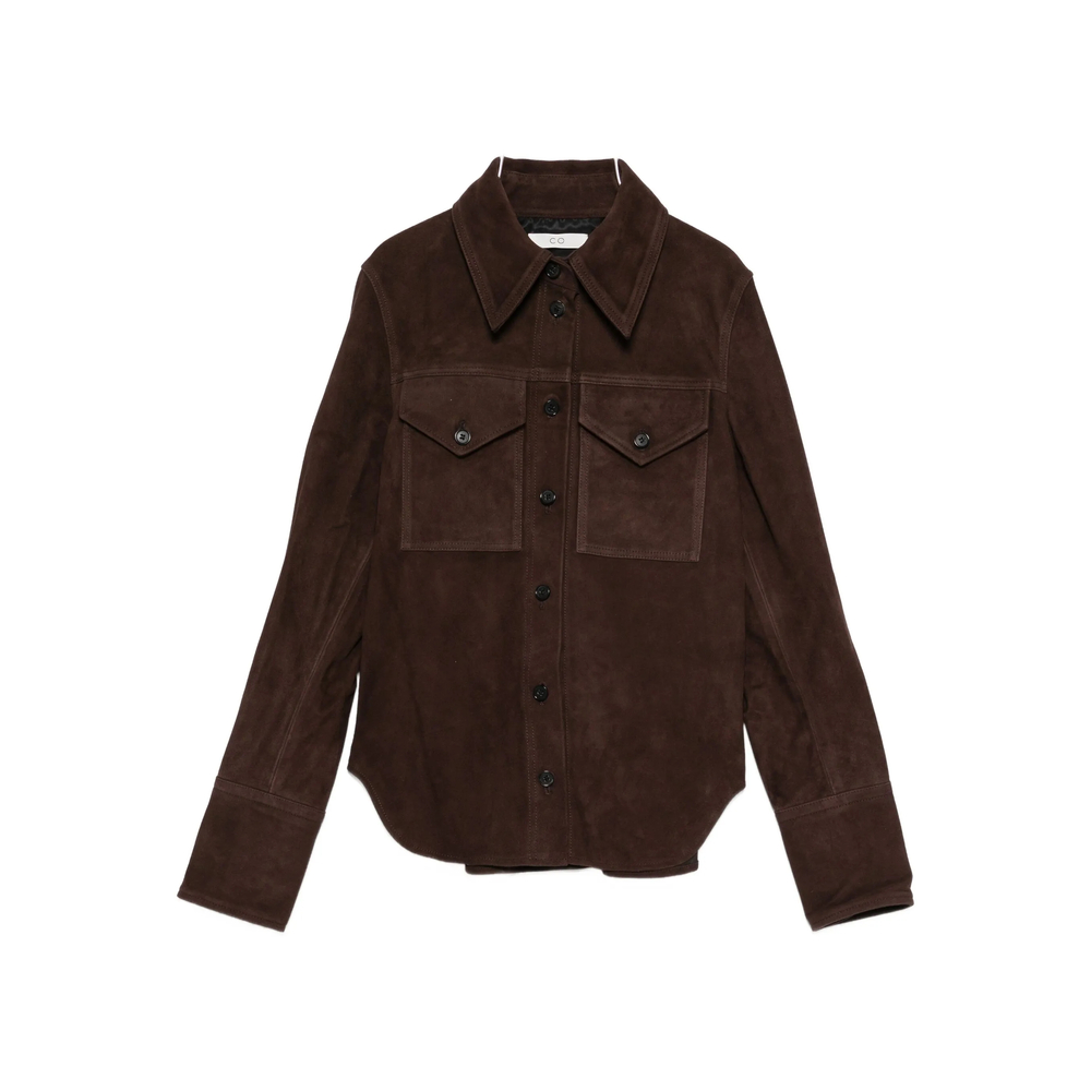 chocolate brown point collar front button fastening long sleeves buttoned cuffs chest flap pockets