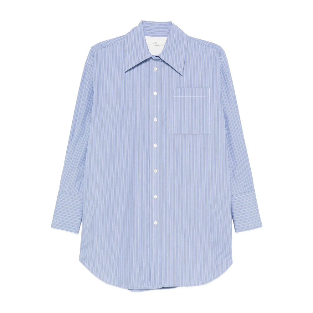 blue striped pattern chest pocket button fastening long sleeves buttoned cuffs