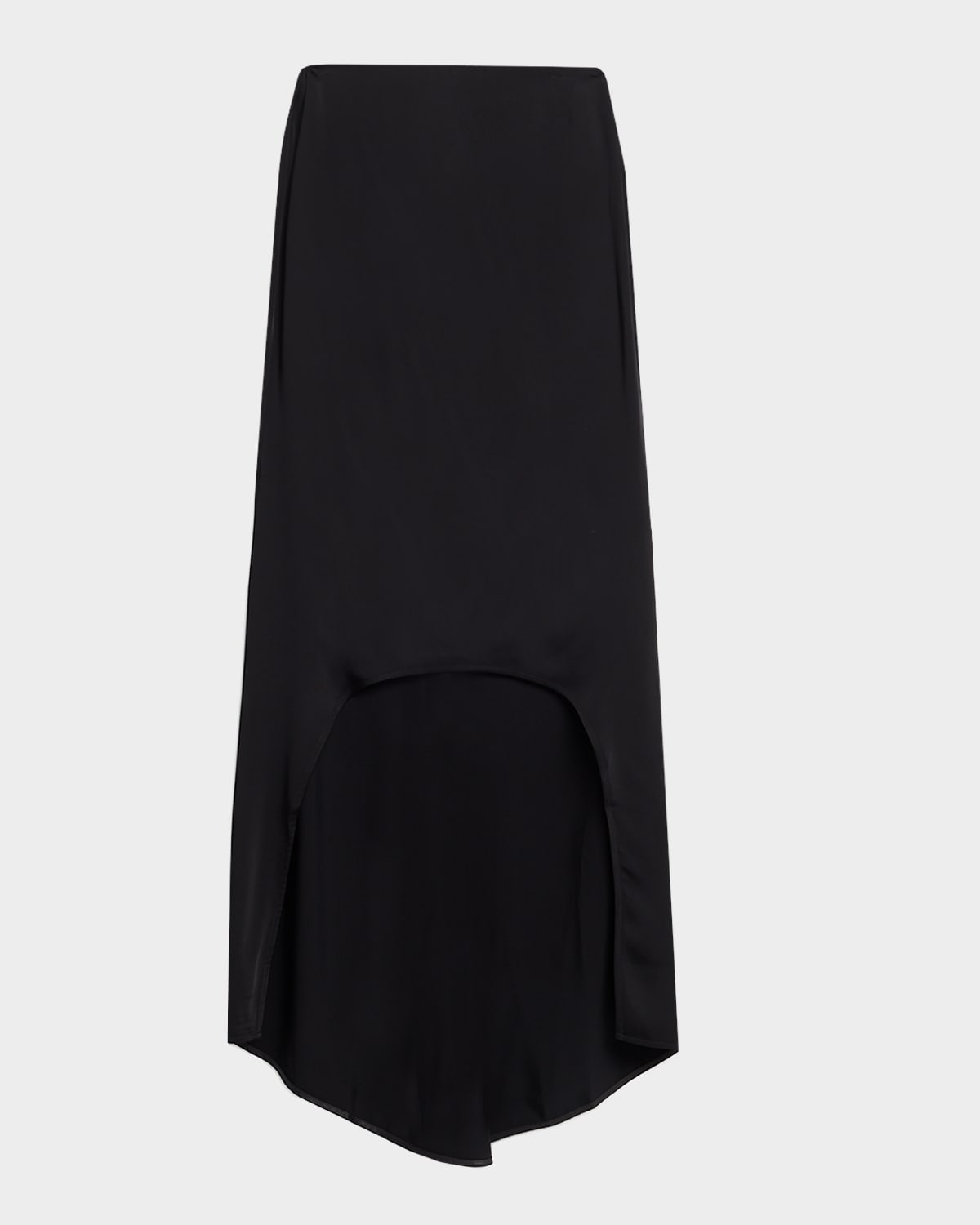 Co skirt featuring a keyhole cutout hem detail Mid waist Skirt falls straight from hip to hem Full length Hidden closure Viscose Imported