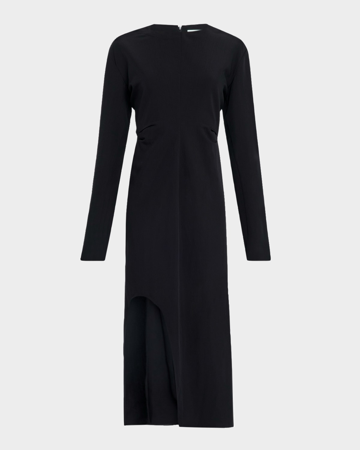 Keyhole Slit Ruched Long-Sleeve Midi Dress