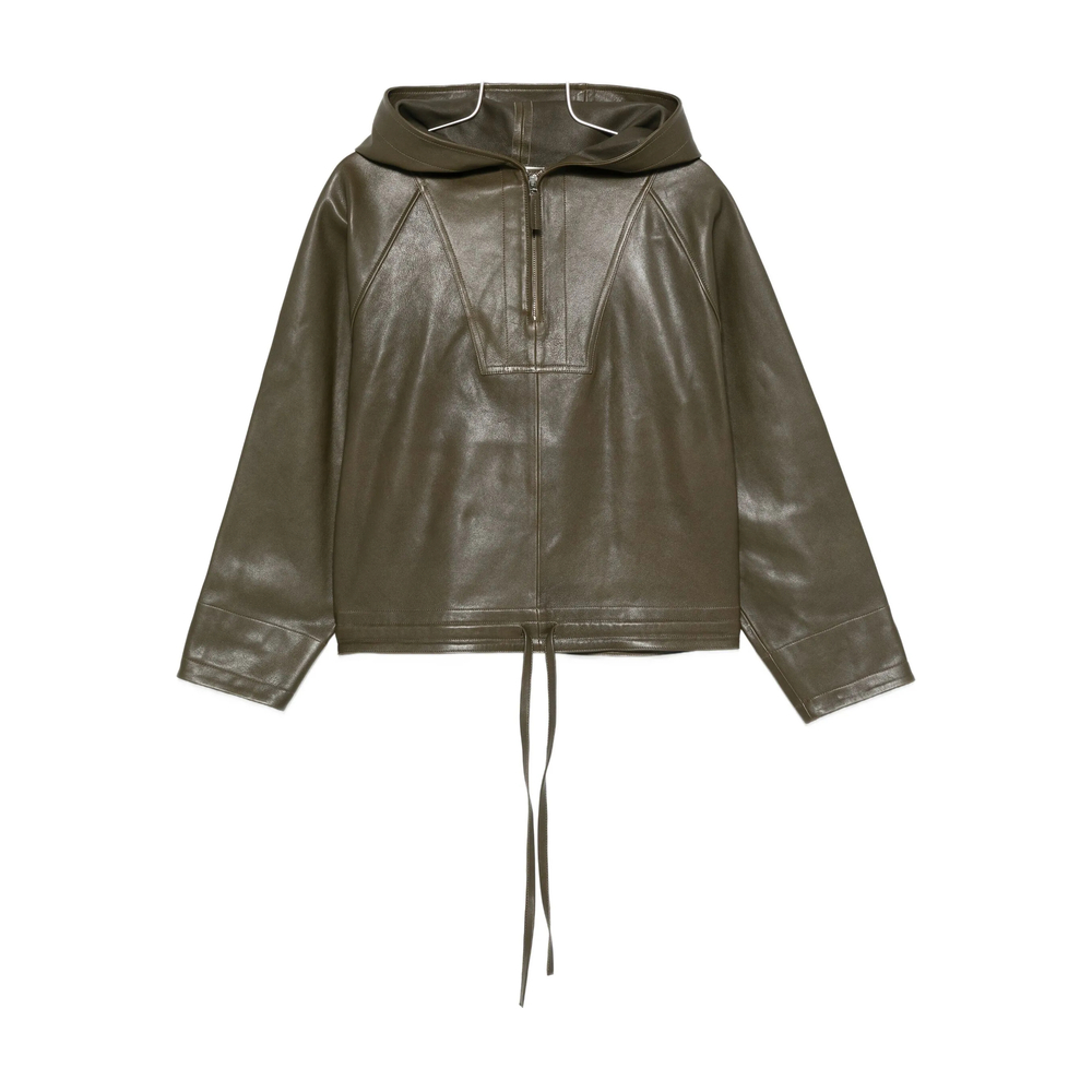 olive green drawstring fastening classic hood long sleeves zip closure panelled design