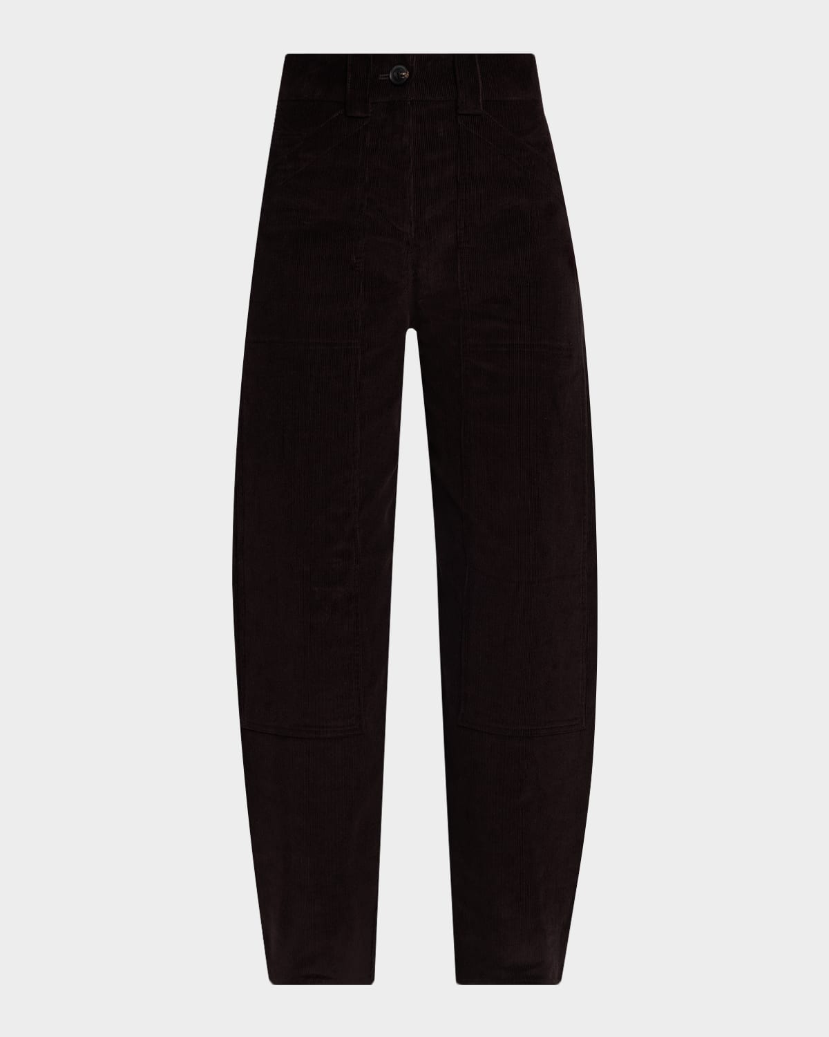 Co pants are crafted of a soft cotton corduroy Mid rise sits high on hip Fivepocket style Curved barrel legs Full length Button/zip fly; belt loops Cotton Imported