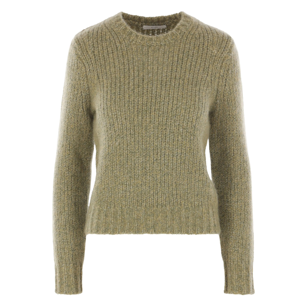 green cashmere-silk blend ribbed knit round neck long sleeves