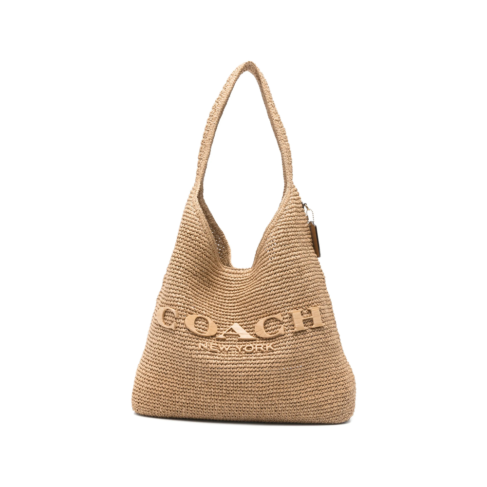 beige woven design top handle logo detail tag internal slip-pocket This piece comes complete with a protective dust bag.
