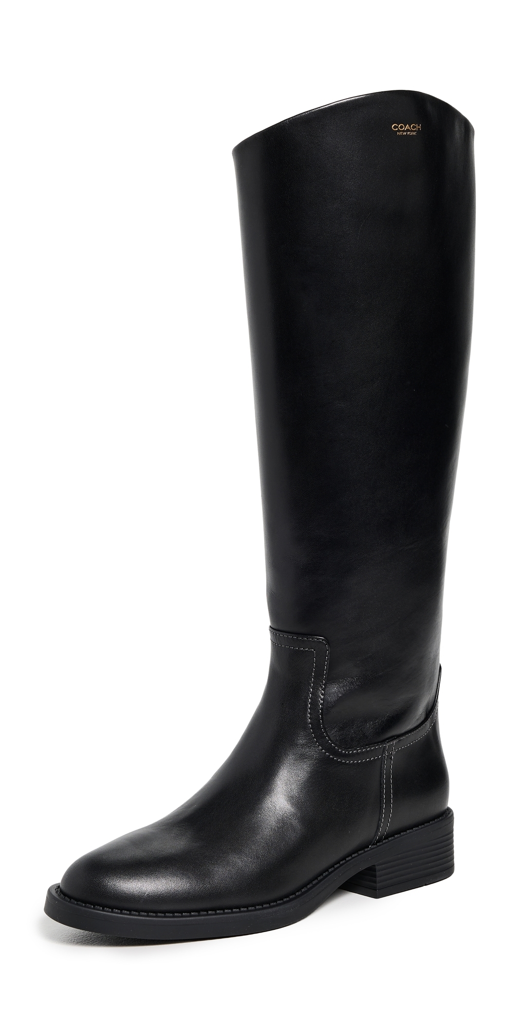 Upper: Cowhide. Gold-tone embossed logo at side. Lining: Leather. Zip closure. Round toe. Rubber sole. Imported, Vietnam. This item cannot be gift-boxed. Measurements: Heel: 1.5in / 40mm 17.25in / 44cm Circumference: 15.75in / 40cm