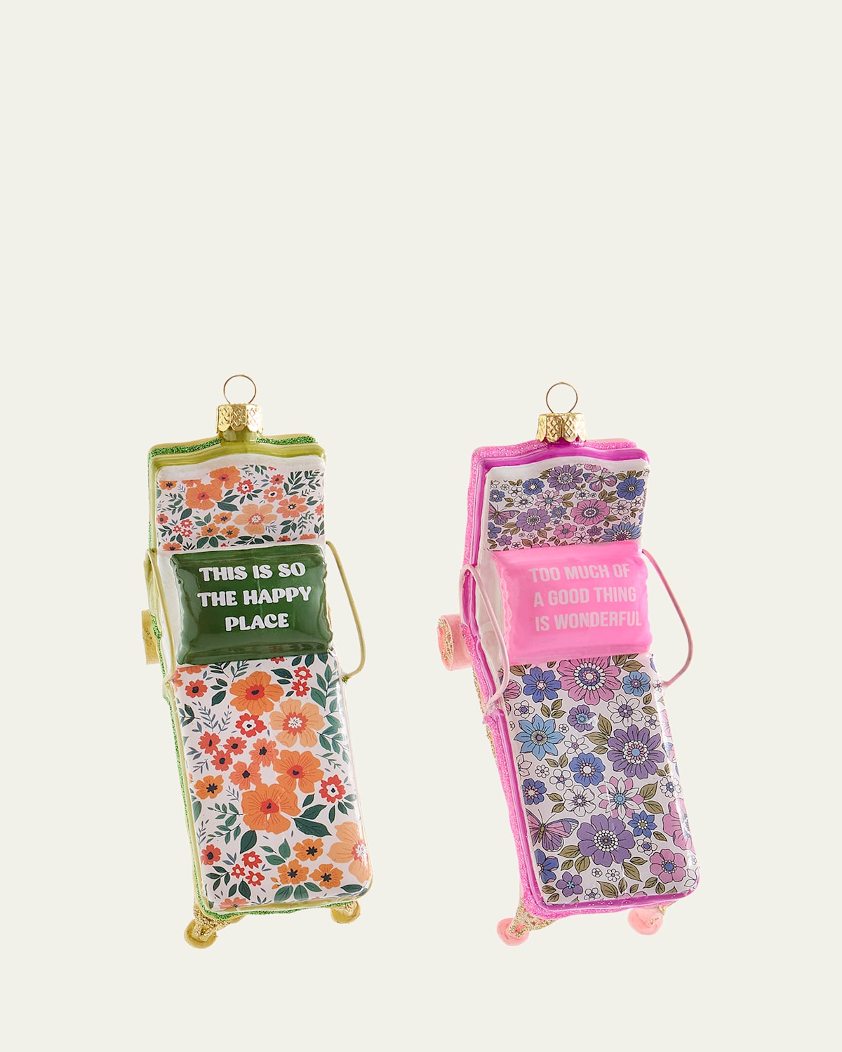 Chaise lounge glass ornament decorated with florals and glitter to brighten up the tree Receive one of the 2 assorted variations pictured Approx. 1.75"L x 2.3"W x 4.5"T Imported