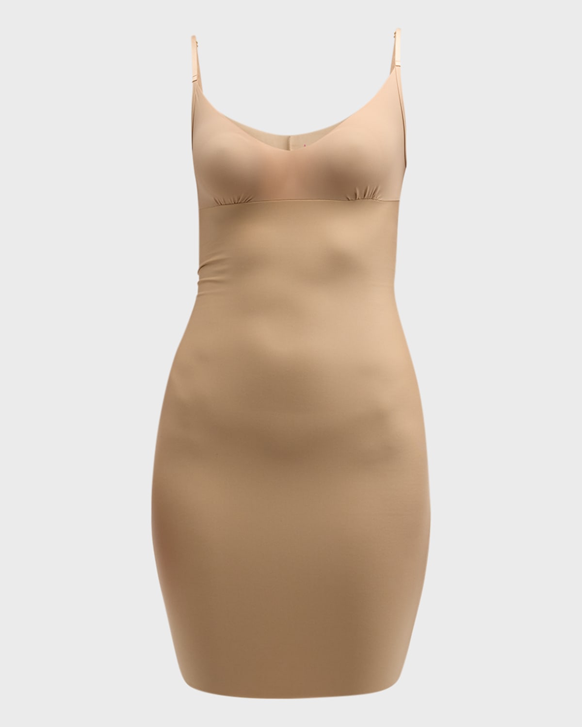 Commando slip made from signature twofaced fabric which features microfiber outside and cotton inside Minimal seaming for a smooth, discreet fit V neckline Adjustable spaghetti straps Hem falls above the knee Formfitting Moderate compression Pullon style Nylon/cotton/spandex Made in the USA of imported material