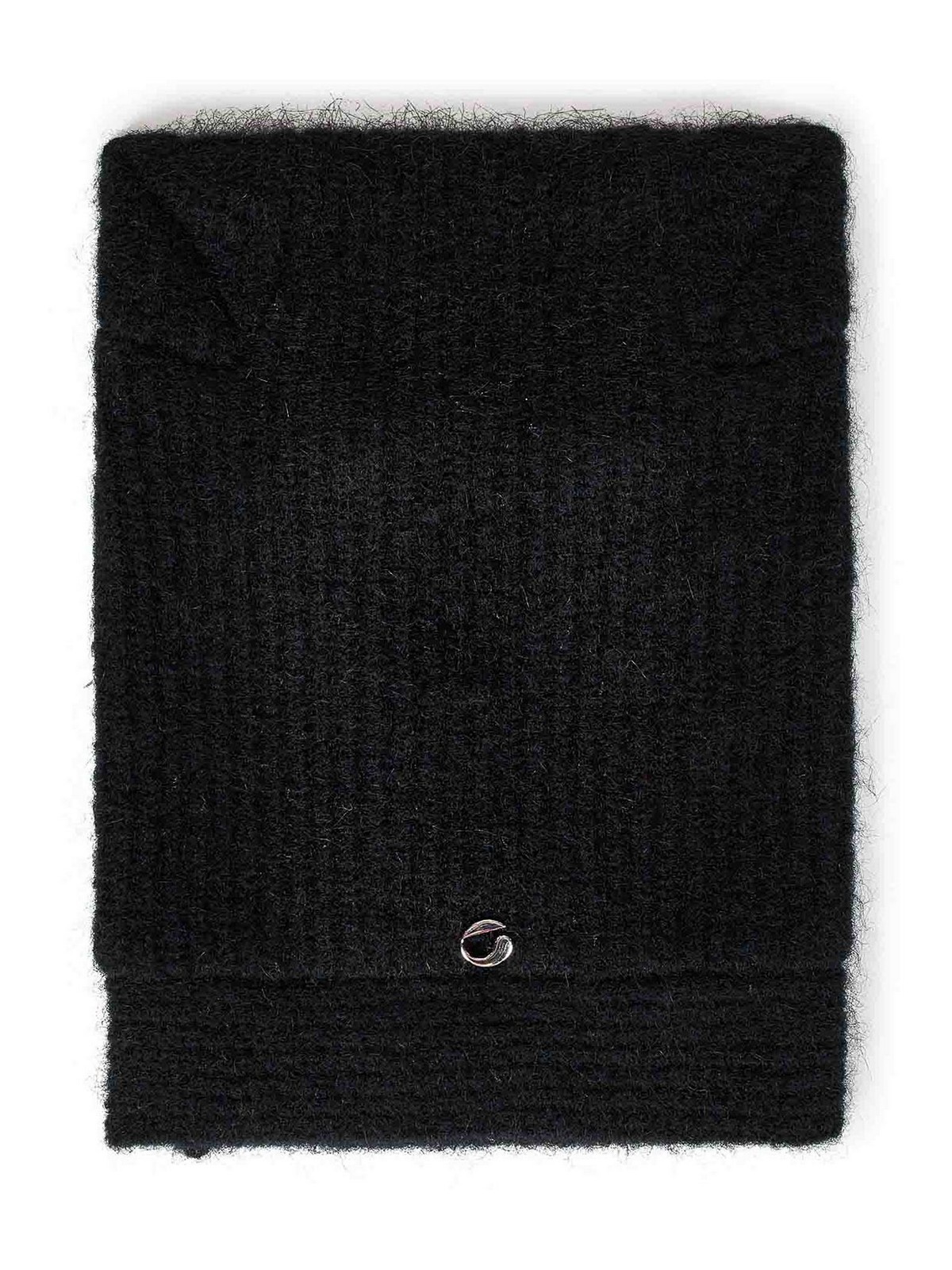 Cache-tête et cache-cou latéraux, cornes cousues sur la partie, effet peigné, logo en fibre fine.