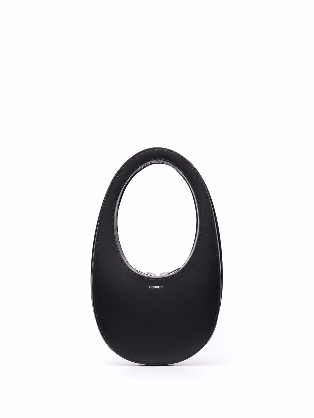 black calf leather debossed logo to the front single rounded top handle two-way zip fastening