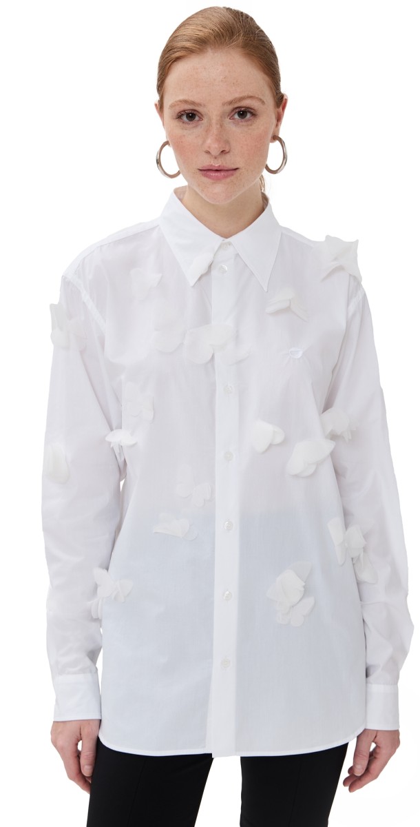 Fabric: Lightweight, non-stretch shirting. 3D floral appliques. Collared neck. Long sleeves with button cuffs. Button placket. Shell: 100% cotton. Wash warm. Imported, Bulgaria. Measurements: Measurements from size 36 Length: 27.5in / 70.0cm, from shoulder