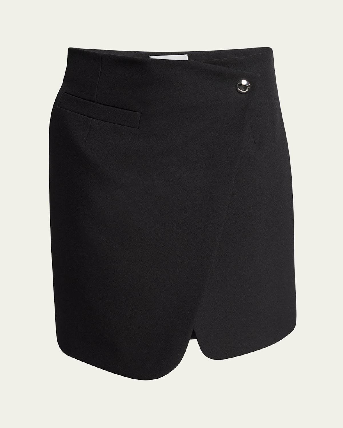 Coperni wraparound skirt Knee length Straight silhouette Side slip pockets Snap closure Polyester Acetate lining Machine wash Made in Bulgaria