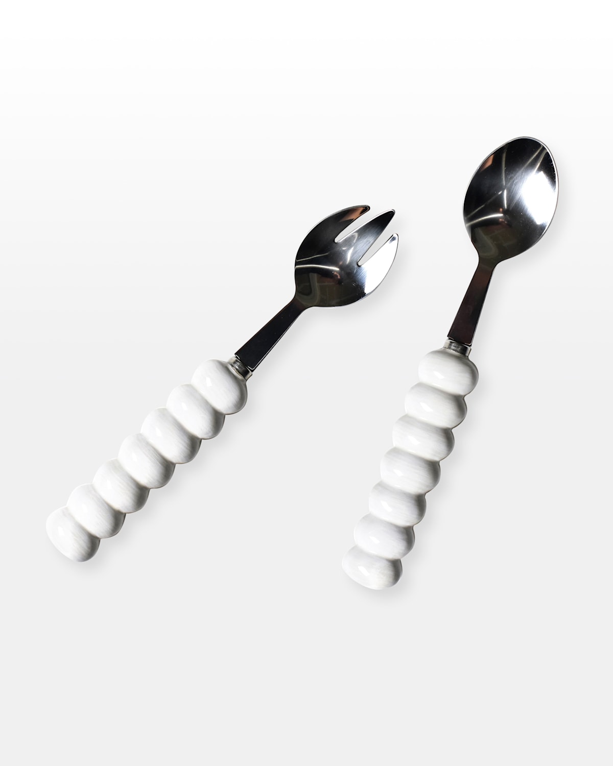 Never miss an opportunity to celebrate every day Set includes serving fork and serving spoon Handcrafted of stoneware Approx. 9.75"L x 2"W Hand wash Imported