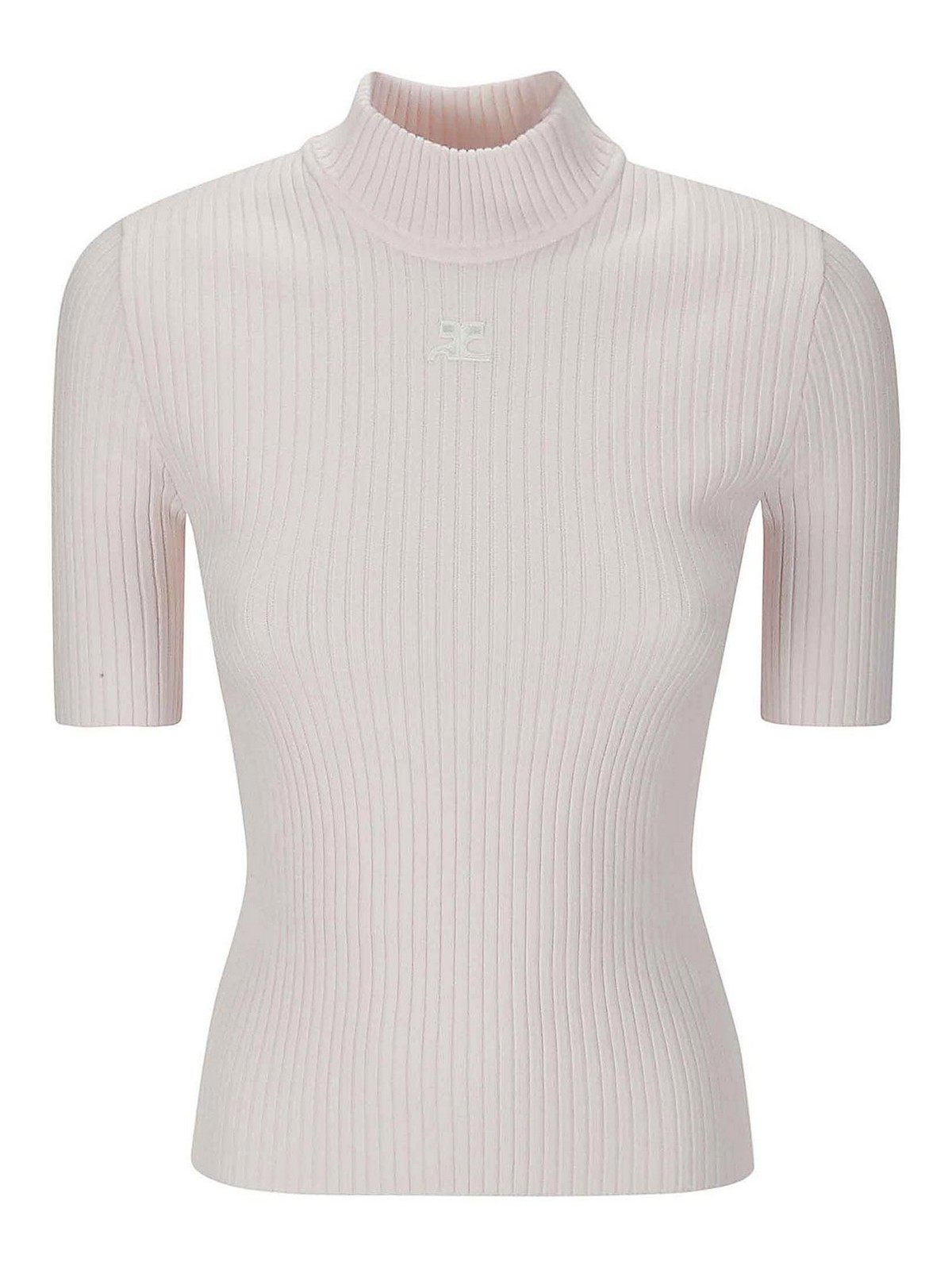 Pull à col roulé à manches courtes et courrèges rose