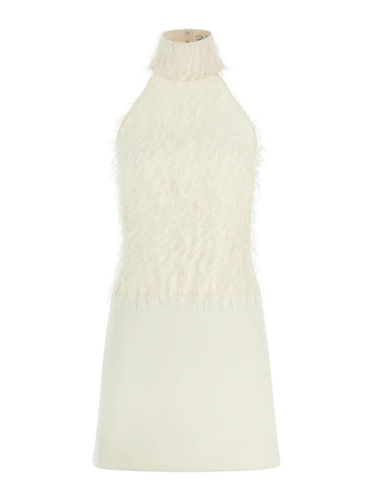 Mini-robe en crêpe à encolure américaine avec bouton-pression au dos et fermeture éclair sans manches dans le dos nu