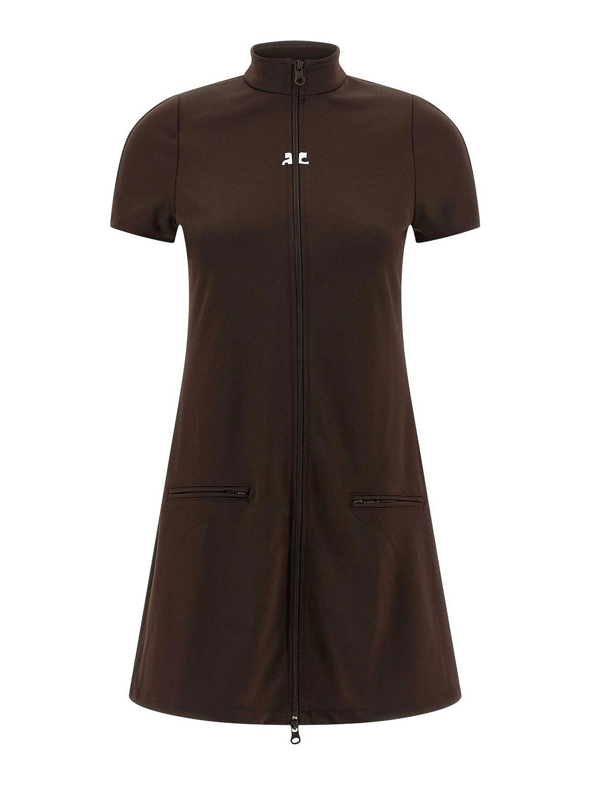 survêtement Interlock, mini-robe brillante, col haut, logo et poches zippées, manches courtes non doublées