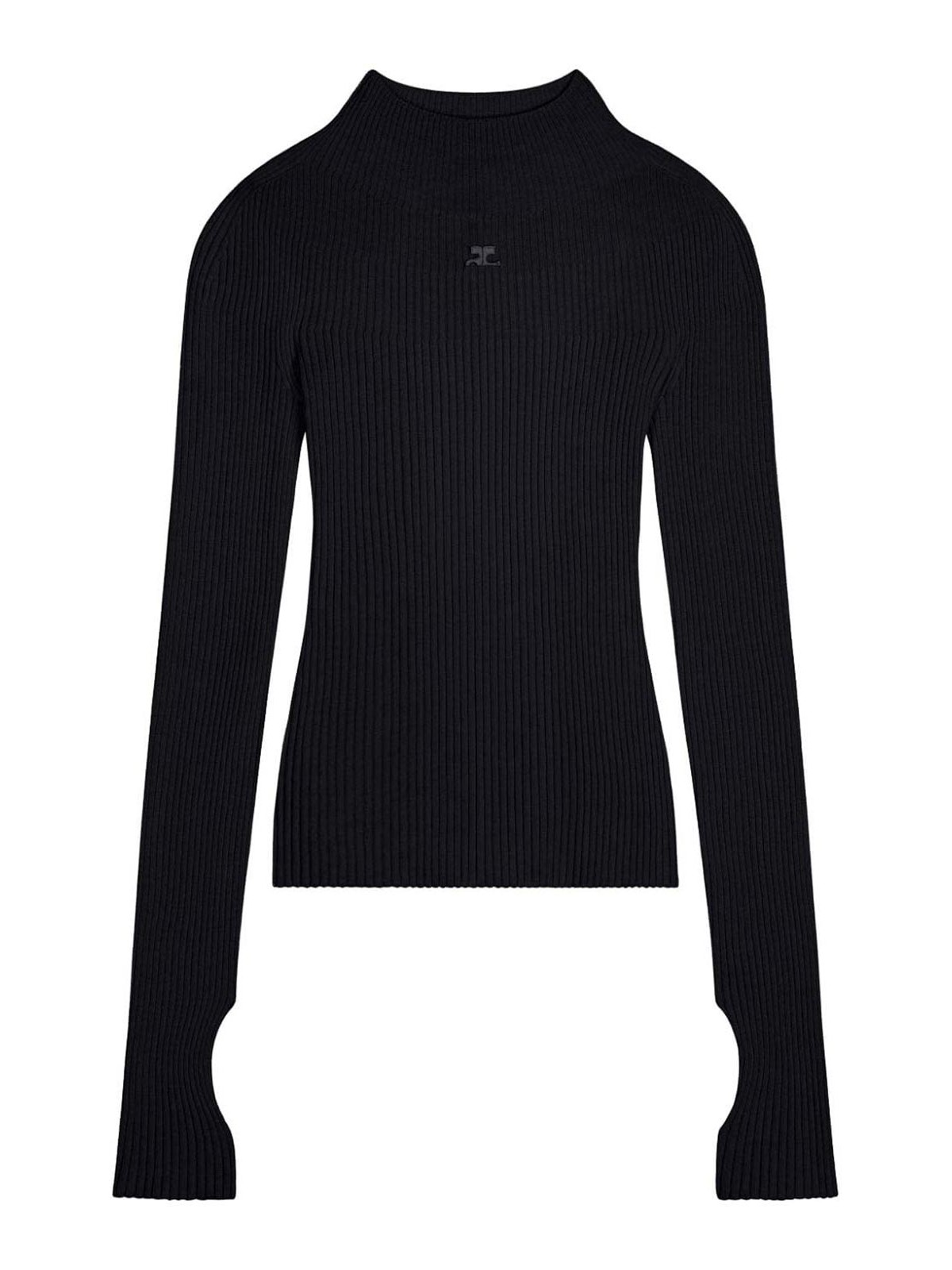 Le pull côtelé noir de Courrges est une pièce essentielle d'une garde-robe chic et moderne. Fabriqué à partir d'un mélange raffiné, il offre une finition côtelée qui ajoute de la texture et du style. Le design est complété par un col haut pour plus de chaleur et de sophistication, des manches longues pour une couverture optimale, idéal pour affronter les journées les plus froides avec élégance et confort.