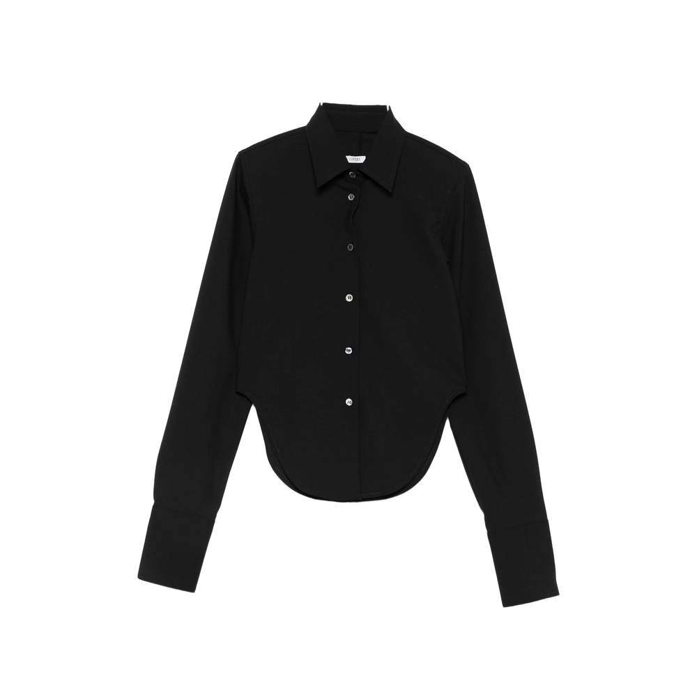 black front button fastening long sleeves buttoned cuffs curved hem
