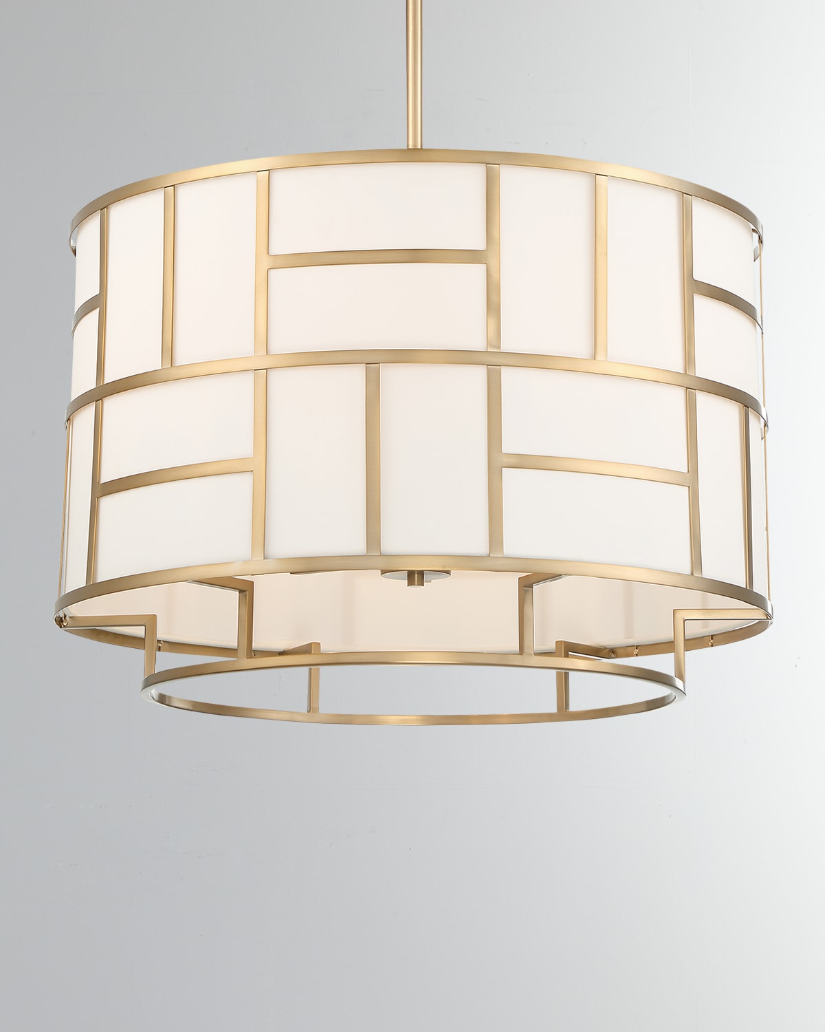 Handcrafted steel chandelier. Uses six 60watt bulbs. Shade dimensions: 24.25"Dia. Chain length: one 6" and three 12" rods. Cord Length: 180"L. Overall: 24.8"Dia. x 17"T. Back plate: 5.75"W. Hanging hardware is included. Imported. Boxed weight, approximately 21 lbs.
