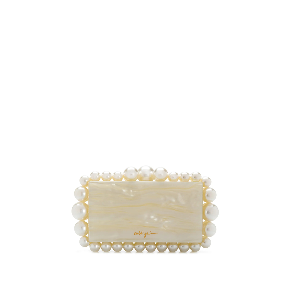 ivory rectangle body pearl detailing marbled pattern clip-lock fastening