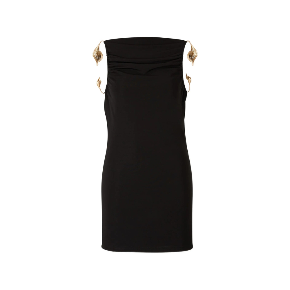 black flower embellishments ruched detail sleeveless low back mini length