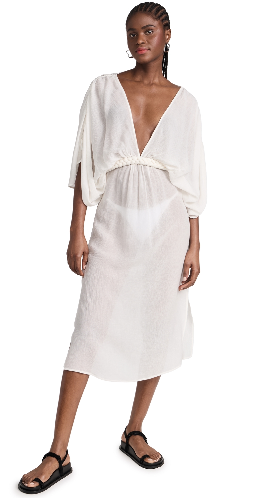 Fabric: Lightweight, non-stretch crinkled silk gauze. Braided empire waist. Thigh high side slits. Tie at back. V neck. Elbow-length sleeves. Shell: 50% rayon/30% silk/20% linen. Hand wash or dry clean. Imported, China. Measurements: Measurements from size S Length: 48.5in / 123.0cm, from shoulder