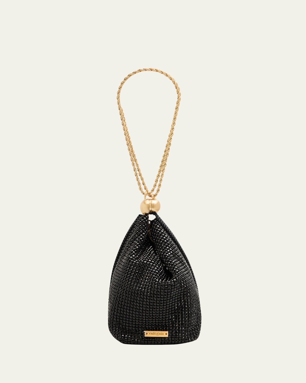 The "Rue" wristlet bag from Cult Gaia is crafted in a chainmail design of glittering glass rhinestones with a top snap bauble that transforms the silhouette Twisted chain wristlet straps Zip top with snap gathering Approx. 6.1"H x 6.9"W x 0.7"D Spot clean Imported