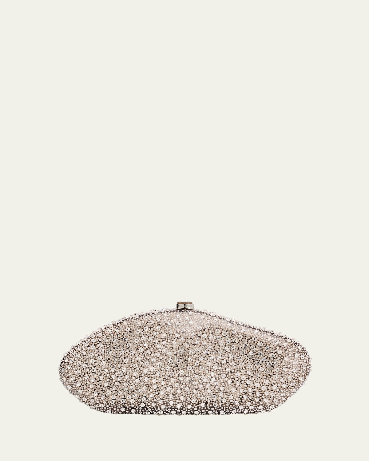 This Cult Gaia "The Caldera" acrylic clutch bag glitters with encrusted glass rhinestones, designed with gentle rises and dents for a sculptural silhouette Framed top with silvertone clasp Approx. 5"H x 11"W x 3.3"D Spot clean Imported