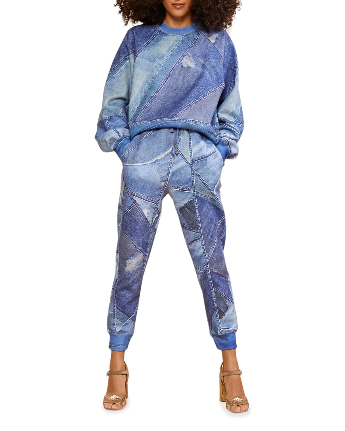 Cynthia Rowley patchworkprinted sweatshirt with ribbing at the cuffs and hem. Crew neckline. Long sleeves. Oversized fit. Banded cuffs/hem. Pullover style. Cotton/polyester. Machine wash. Imported.
