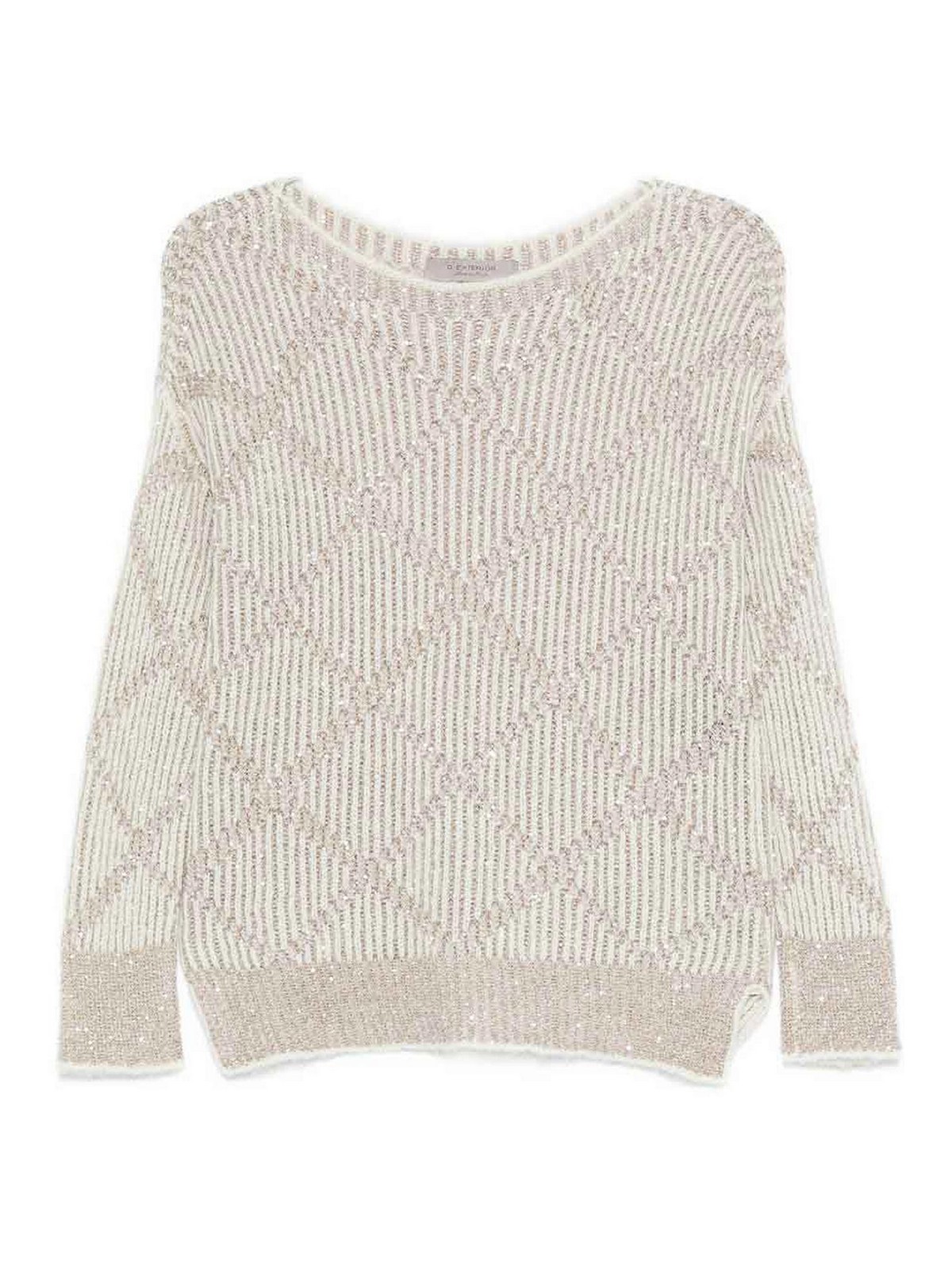 Motif à paillettes grises, manches longues, ourlet côtelé, col rond