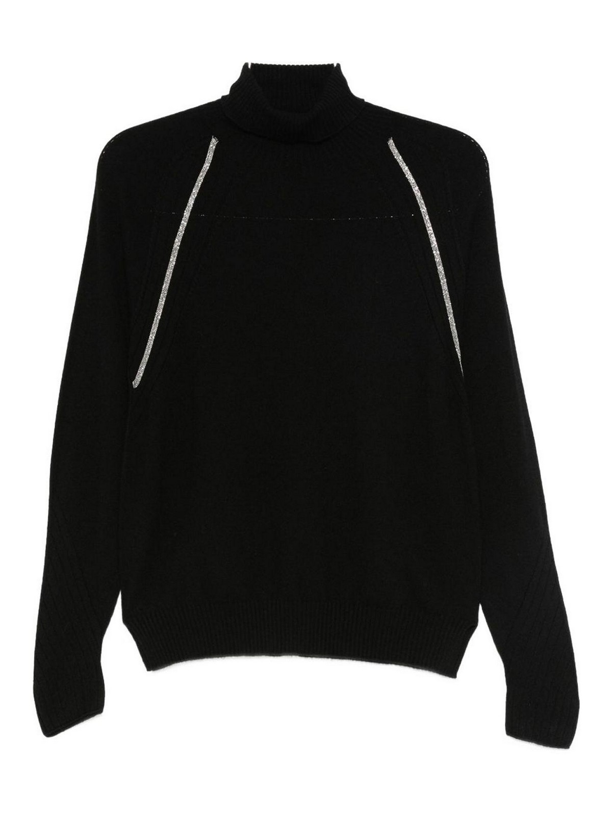 Col roulé noir, manches longues, ourlet côtelé, ourlet droit