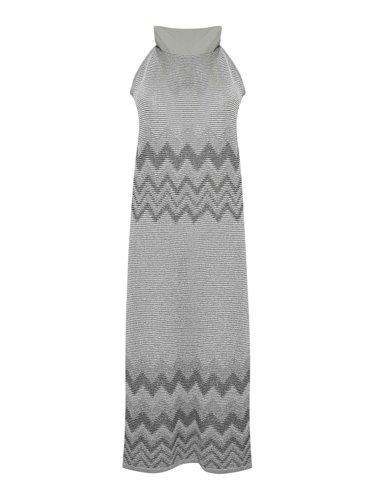 Encolure licou sans manches en viscose, col haut avec ceinture à nouer sur la nuque, motif géométrique dégradé, doublé