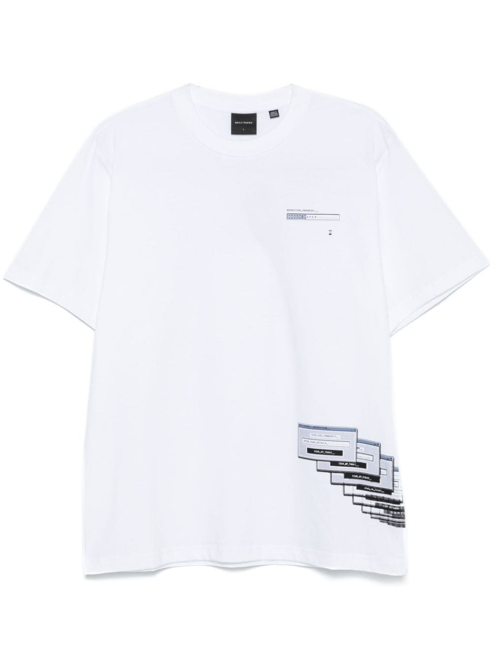 white cotton jersey texture crew neck short sleeves logo print at the chest graphic print to the front graphic print to the rear straight hem When buying this unisex item, keep in mind that it is graded in standard men's sizing.