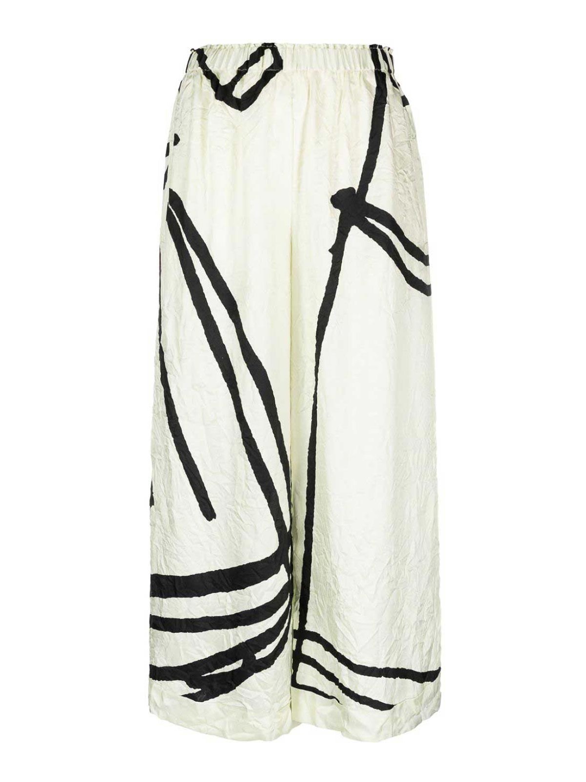 Taille haute à imprimé pictural blanc et noir, jambe courte, jambes larges, ceinture élastiquée, style à enfiler, deux poches latérales, ourlet droit