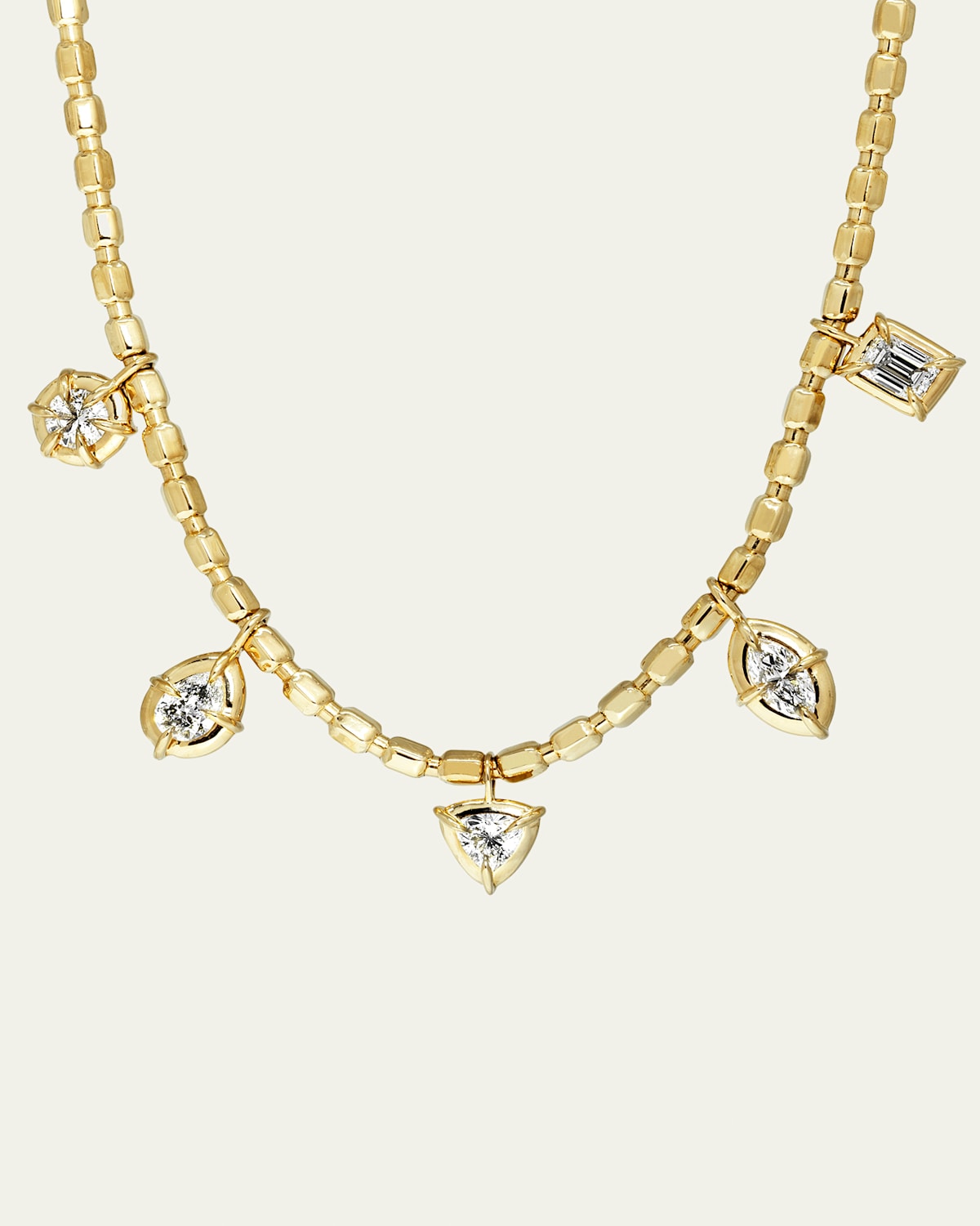 Dara Kaye charm necklace Necklace length: approx. 16 inches Polished 14karat yellow gold Mixedcut labgrown white diamonds 2.38 total diamond carat weight Adjustable length Lobster clasp Made in USA