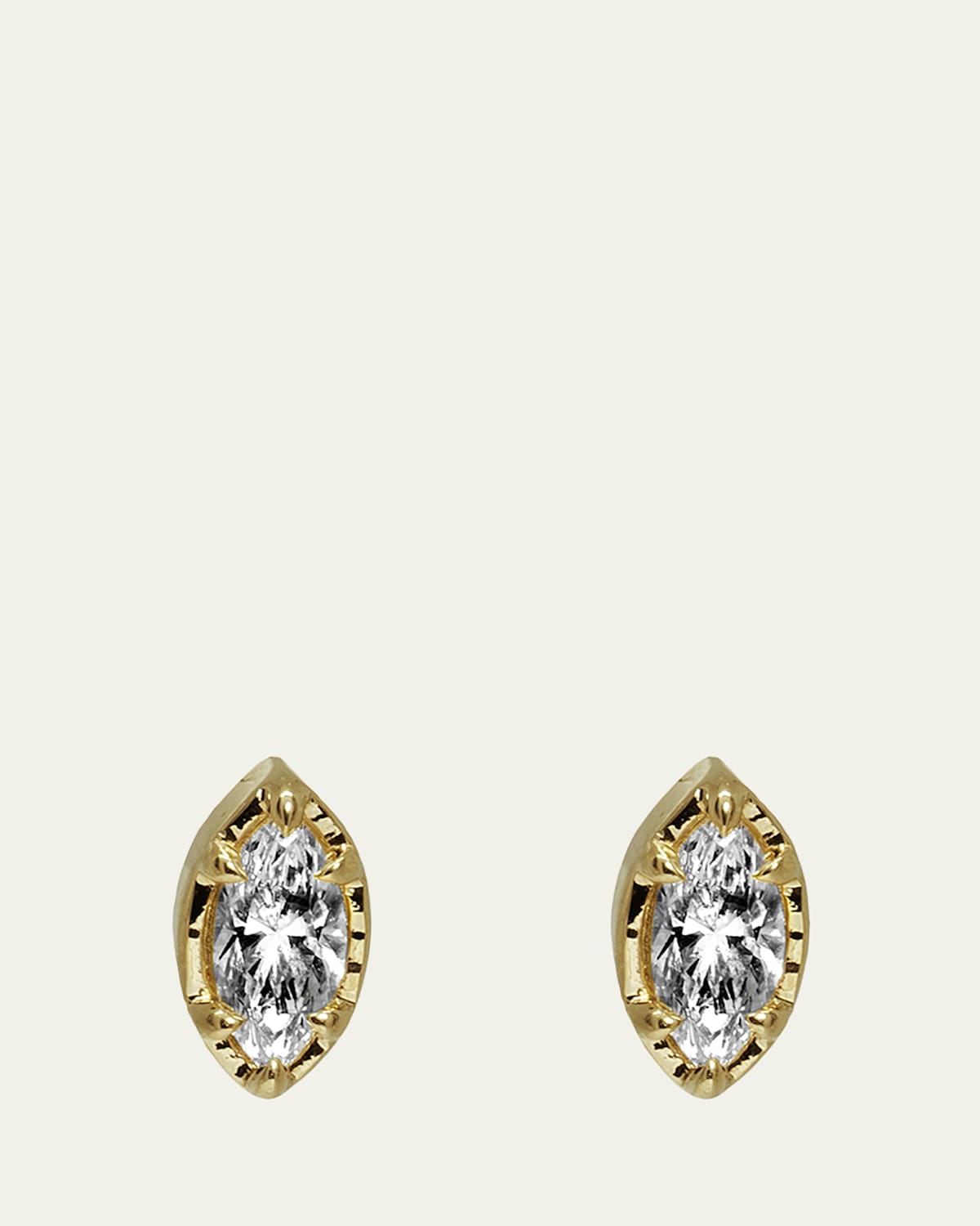 Dara Kaye showcases beautiful labgrown diamonds cut into a brilliant marquise shape for these huggie earrings. Shiny 14karat yellow gold Labgrown diamonds (DEF color) Diamond total carat weight: 0.99 For pierced ears Made in USA
