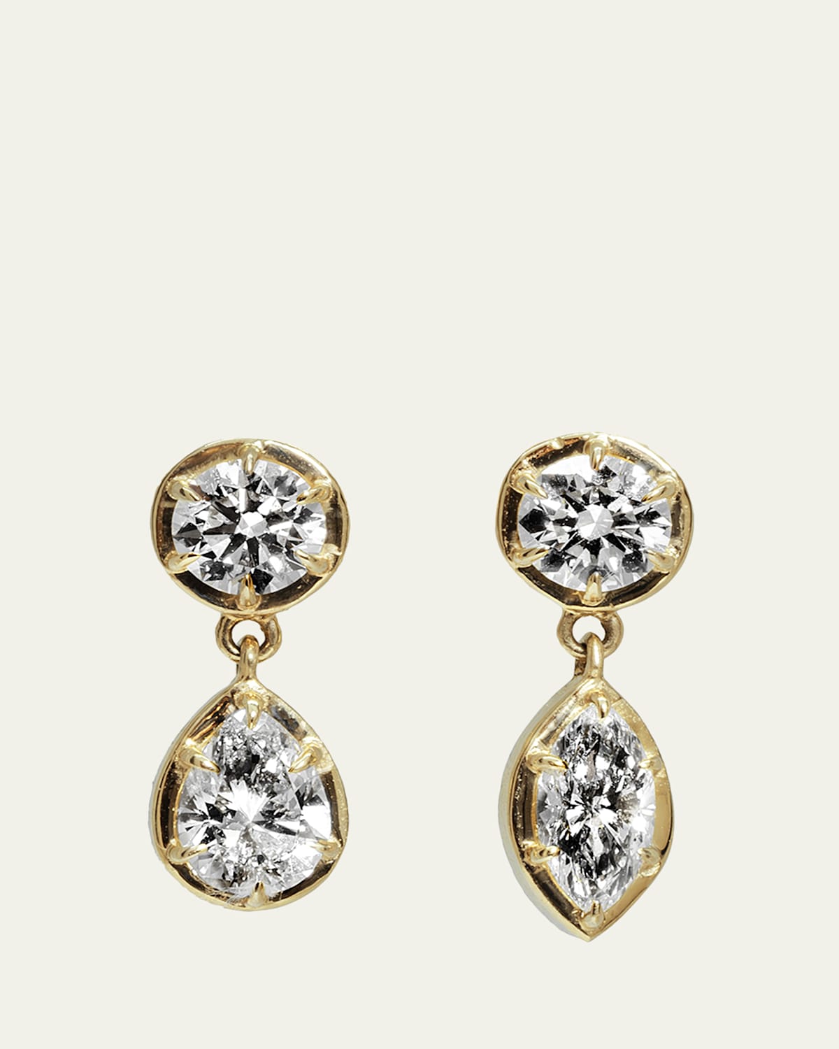 Mixedcut and mismatched, labgrown diamonds with a sparkling brilliance define these Dara Kaye drop earrings. Shiny 14karat yellow gold Labgrown diamonds (DEF color) Diamond total carat weight: 2.22 For pierced ears Made in USA