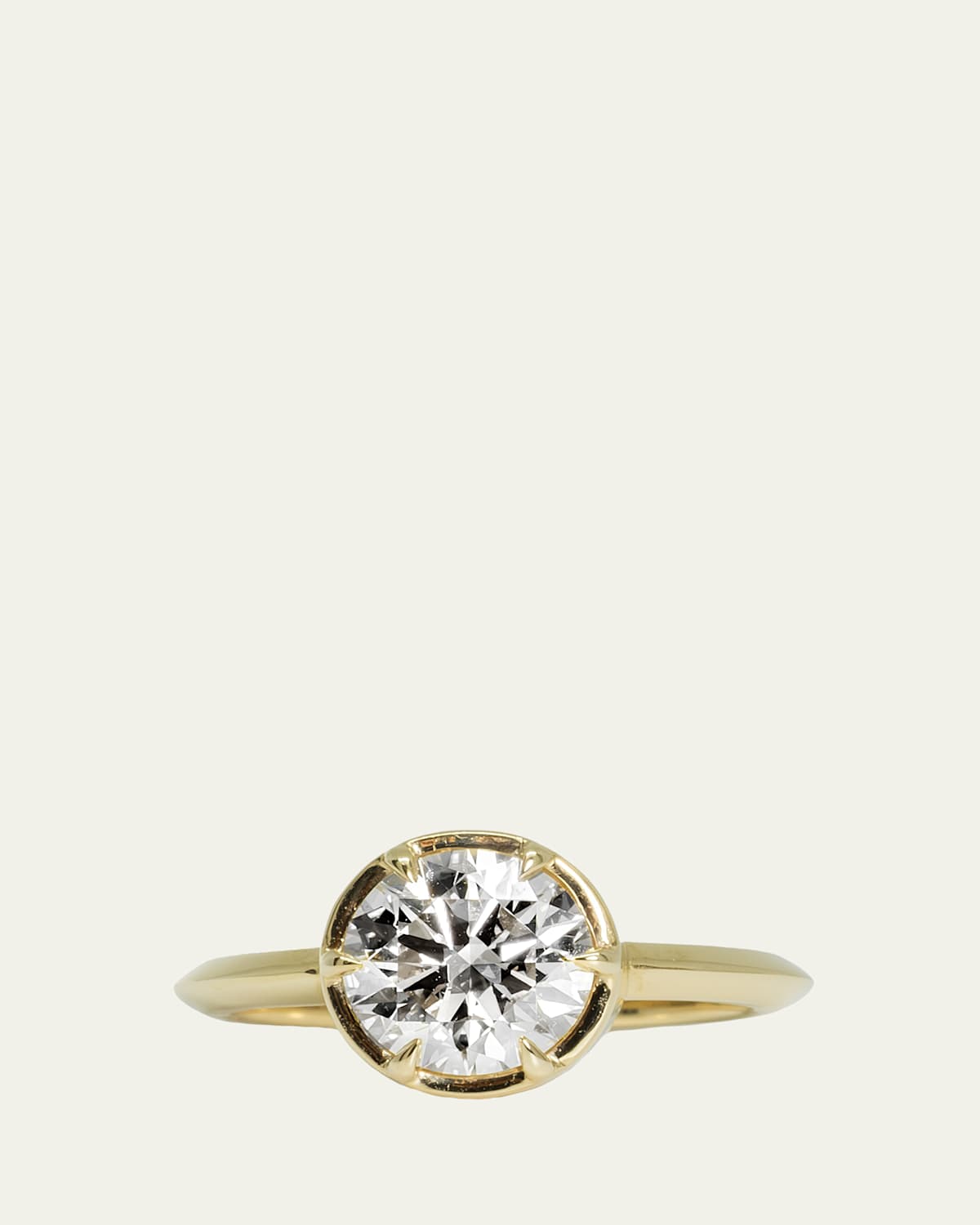 Dara Kaye showcases a beautiful labgrown diamond cut into a brilliant round shape for this solitaire ring. Shiny 14karat yellow gold Labgrown diamond (DEF color) Diamond total carat weight: 1.01 Made in USA