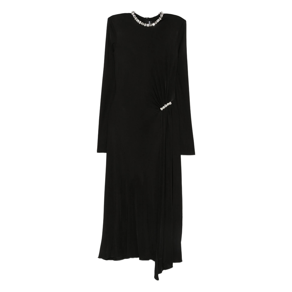 black crystal embellishment neckline long sleeves asymmetric hem draped detail side-placed crystal embellishment