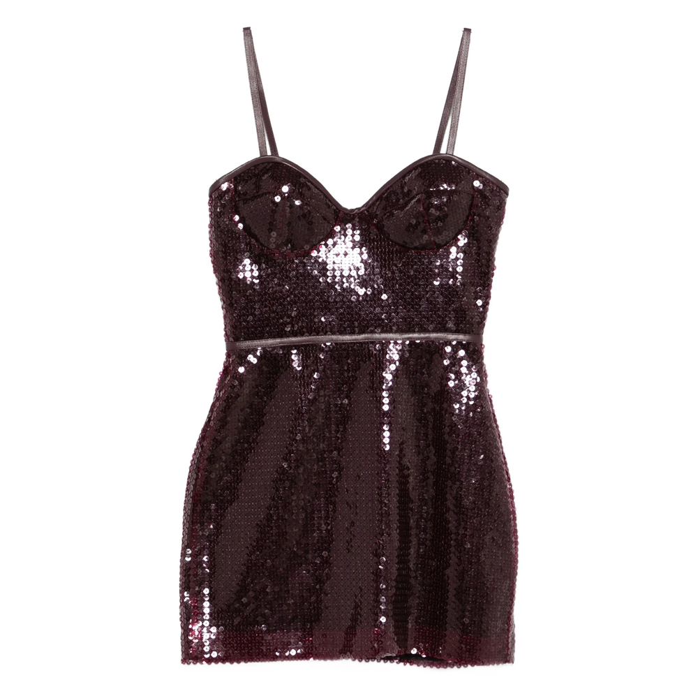burgundy sequin embellishment sweetheart neckline spaghetti straps fitted bodice straight hemline