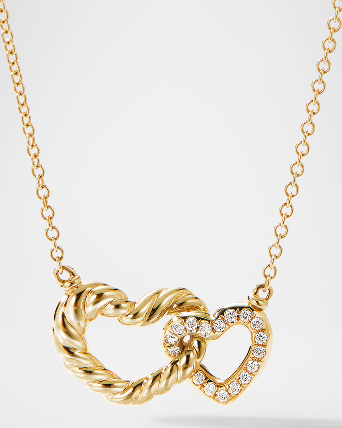 Cable Collectible Interlocking Heart Necklace with Diamonds in 18K Gold, 20.6mm