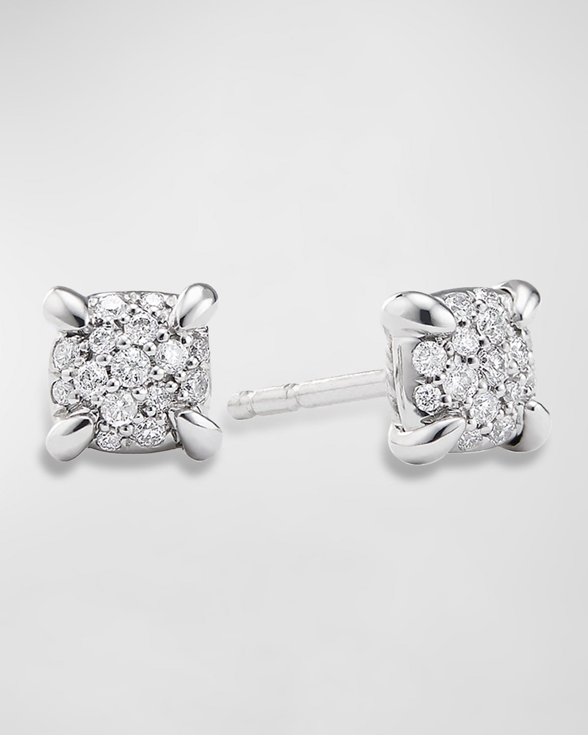 Châtelaine stud earrings by David Yurman. Polished 18karat white gold hardware. Pavéset diamonds with four prongs. 0.11 total diamond carat weight. Post backs for pierced ears. Approx. 5mm wide. Imported.