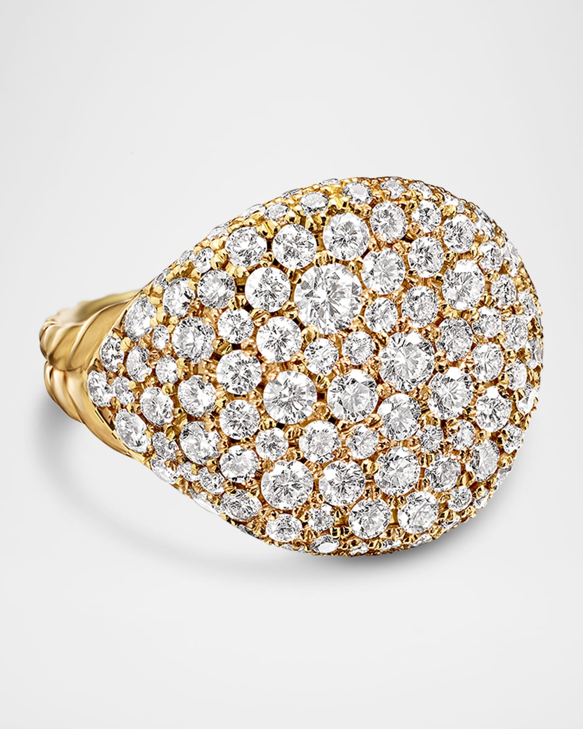 Chevron Pave Pinky Ring with Diamonds in 18K Gold, 13mm
