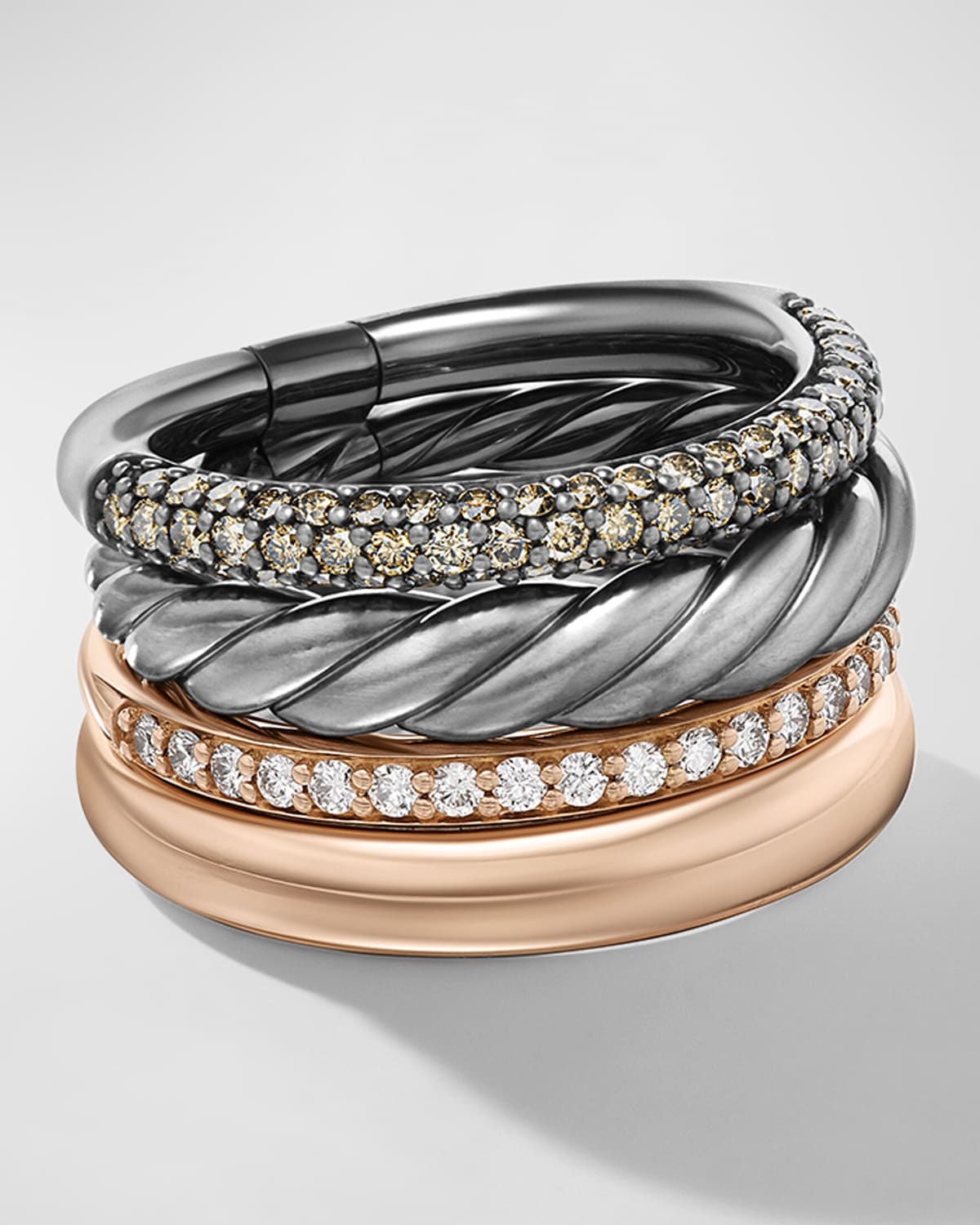 DY Mercer Ring with Diamonds in Silver and 18K Rose Gold, 14mm