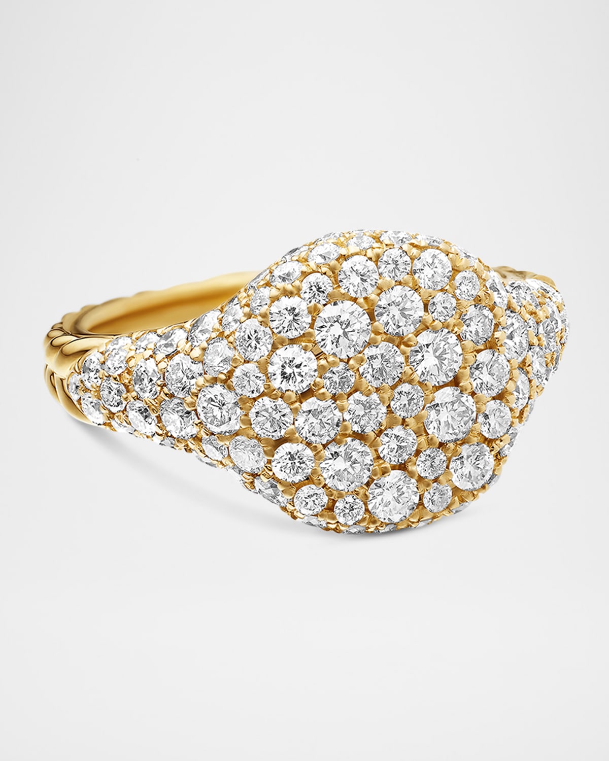 Pave Pinky Ring with Diamonds in 18K Gold, 10mm